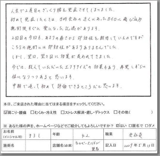 ぎっくり腰(急性腰痛) (42歳男性 会社員 まるしさん)
