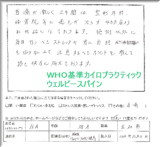首痛が激しく2年間位整形外科、